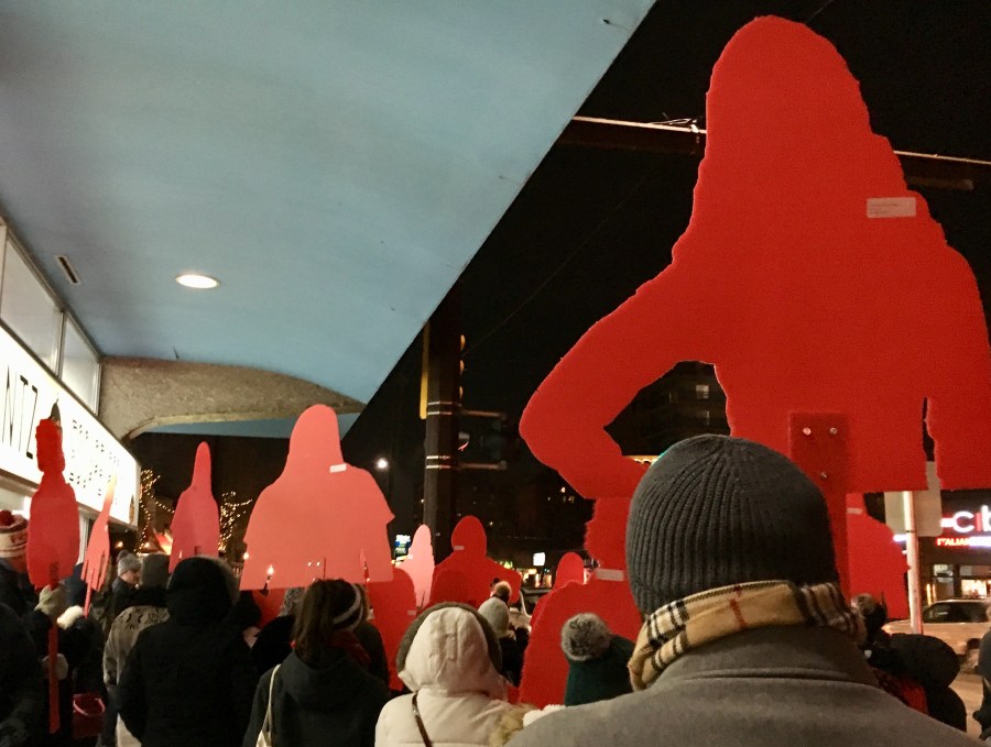 But back to tonight: The Memorial March kicked off with one of the organizers saying that if Valentine’s Day is about celebrating love, it’s worth remembering that every missing or murdered woman has filled someone’s heart. And while we think of these women, we should also take time to send love to their family and friends who are grieving tragic losses.